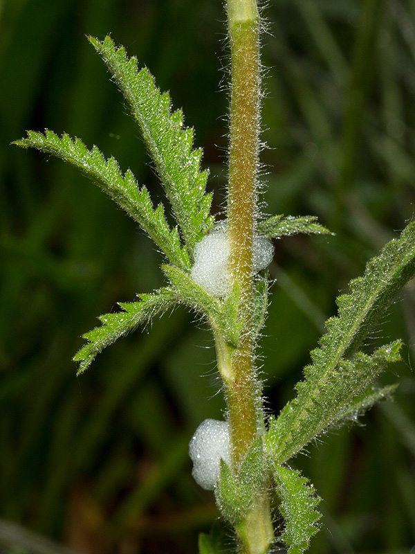 Froth of Meadow Spittle Bugs (Philaenus spumarius) on Cinquefoil.