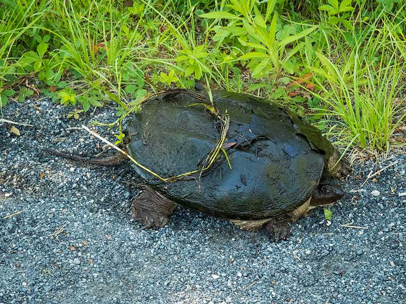 June 12th. Snapping Turtles (Chelydra serpentina) are taking advantage of warm weather (at last!) to lay eggs.