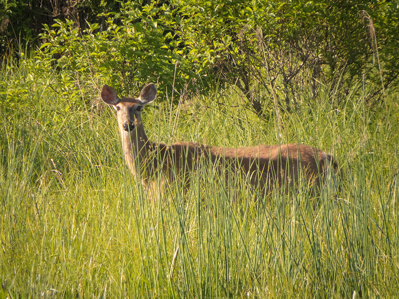 A White-taild Deer (Odocoileus virginanus) doe far across the marsh.