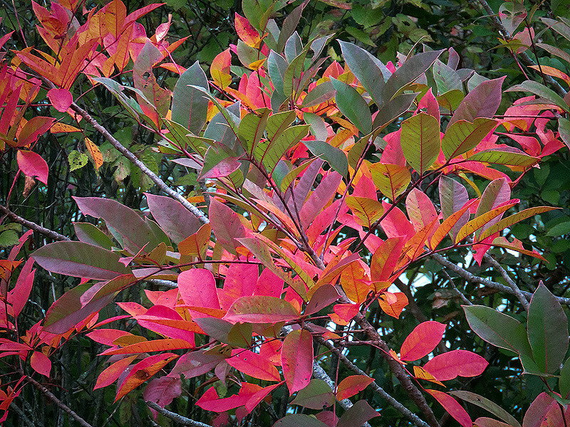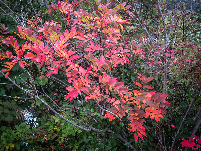 October 4th. Poison Sumac (Toxicodendron vernix). I'd always assumed that this was one of our non-poisonous sumacs, but I see that they all have toothed leaflets. Glad I never picked any.