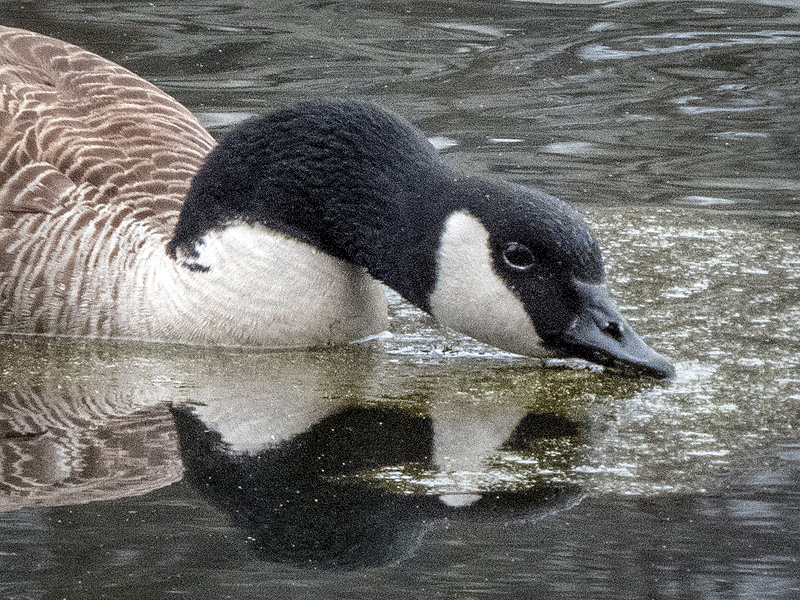 Feeding on Duckweed (Lemna minor) which has just begun rising from the bottom where it sank in the fall. Duckweed leaves store starch in the fall, filling air pockets between the cells and causing the plants to sink and be sheltered from surface ice. The plants, sporting new small bright green leaves rise as they begin to photosynthesize, producing Oxygen. Along with Carbon Dioxide in the leaves, the plants become boyant enough to float. (Explanation courtesy of Declan McCabe in Northland Woodlands magazine, Spring 2018 issue.)