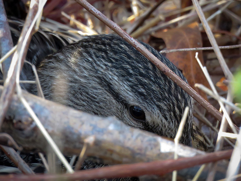 Trail regular Lauren pointed out this female Mallard (Anas platyrhynchos) distressingly close to the trail. It's well withing reach of a dog on even a short leash.