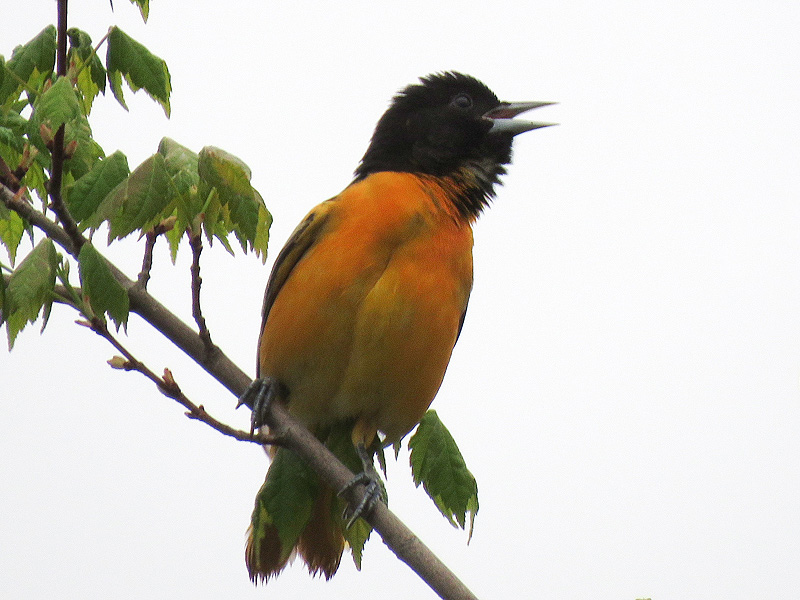 Several male Baltimore Orioles (Icterus galbula) around, and I thought I saw one chasing Red-winged Blackbird and an Orchard Oriole male.