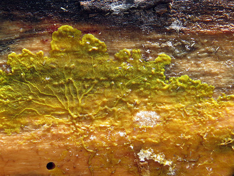 Yellow Slime Mold (Physarum polycephalum) under bark.