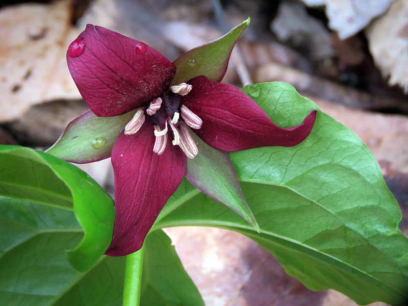 April 25th. In the background the reds of maples and pale greens of oaks.