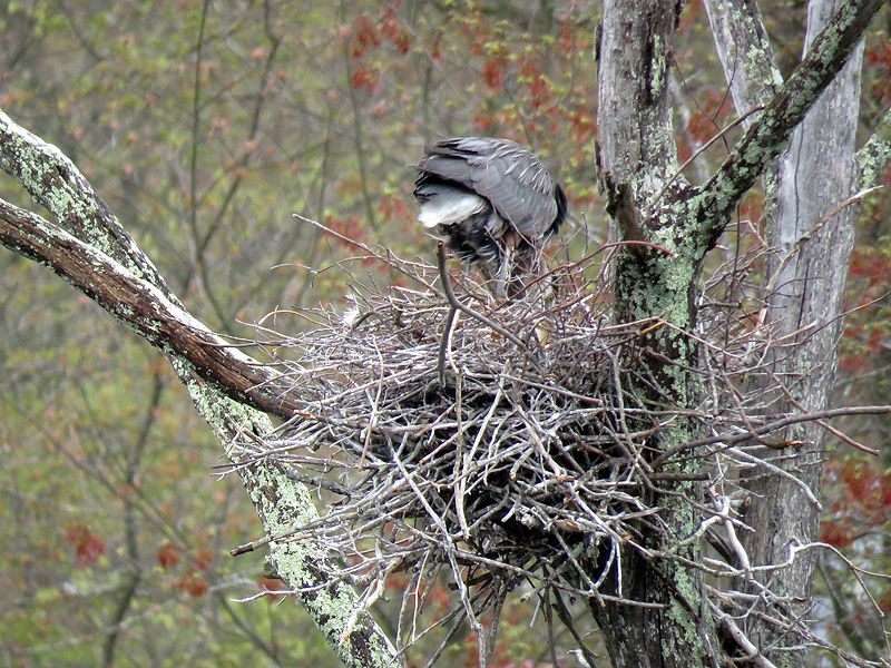 Can you make out the tiny white speck in the nest, right in front of a branch?