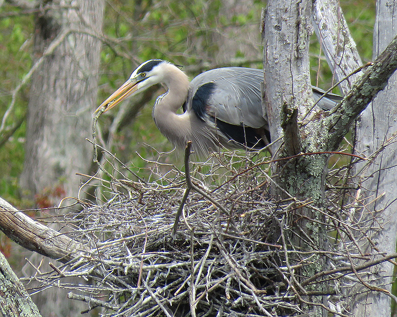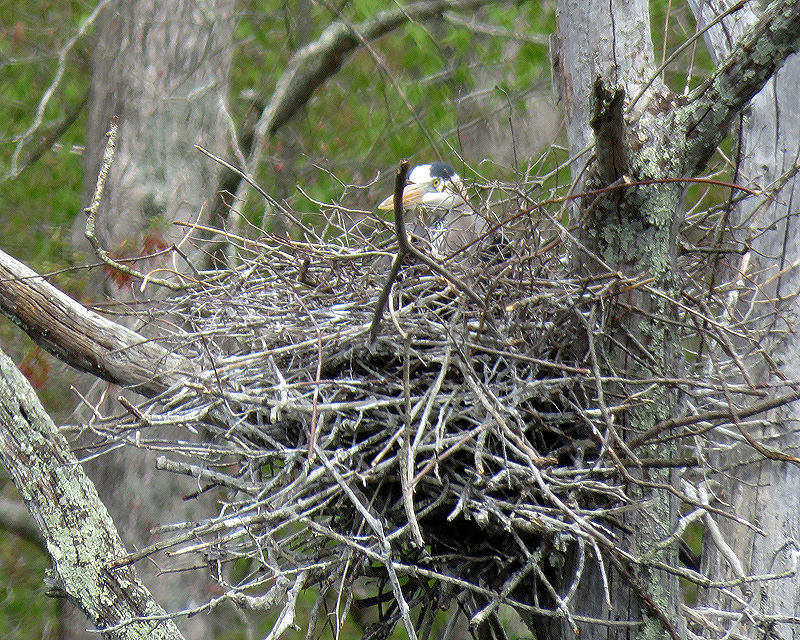 Next stop, east of Route 207 to check on the heron nests. Similar activity on the first nest: periods of brooding, interspersed with nest and egg maintenance.