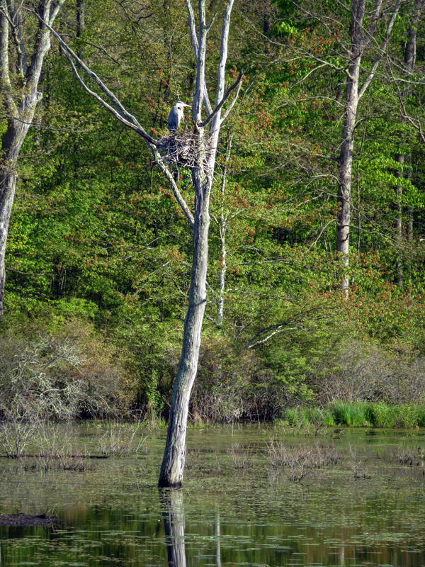 East of Route 207, Willy was absent and the active Great Blue Heron (Ardea herodius) nest was briefly vacant until this male returned.