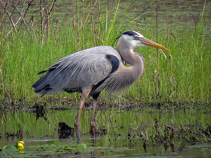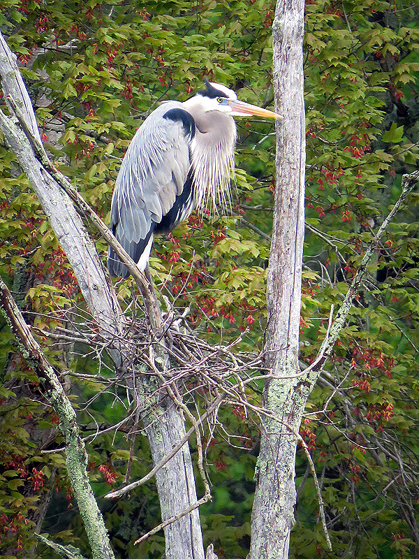 East of Route 207, a Great Blue Heron (Ardea herodius) perched above the nest.