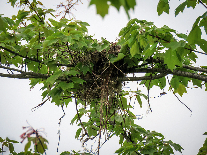 May 26th. Large nest, up high. Eastern Kingbird (Tyrannus tyrannus) maybe?