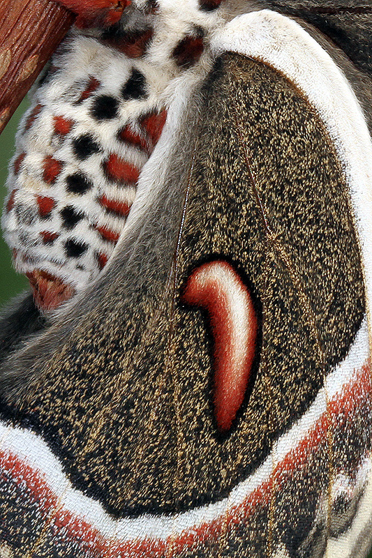 This female Promethea Moth (Callosamia promethea) emerged several days ago from a cocoon found along the trail just recently.