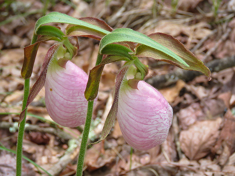 Late morning walk east from Old Hartford Road for another "photo op" of the Pink Lady's-slipper Orchids (Cypripedium acaule) nearJudd Brook.