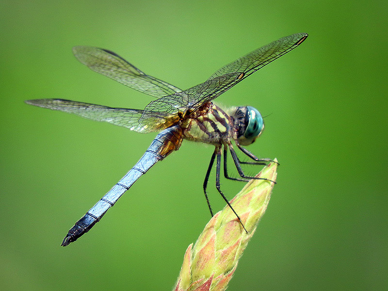 July 10th. A brief afternoon walk at the marsh with sun and temps in the high eighties. Lots of Blue Dasher dragonflies (Pachydiplax longipennis). This and photos that follow are three of therm.