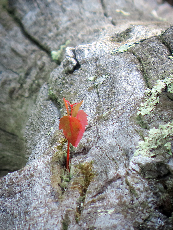 Red Maple (Acer rubrum) seedling in a most precarious place to sprout.
