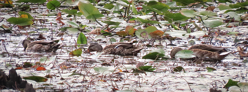 September 18th. Three youngish Mallards (Anas platyrhynchos). Nice to see since most waterfowl have abandoned the marsh due to low water.