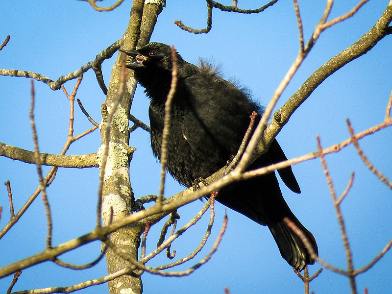 Again, calling but not displaying. At 16 degrees, too cold for fluffing feathers? Or just no other males close enough to see?