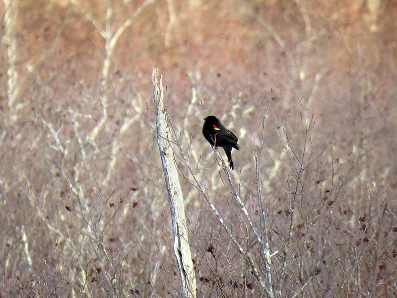 February 16th. Male Red-winged Blackbirds (Agelaius phoneniceus) are back! I saw and heard three this morning.