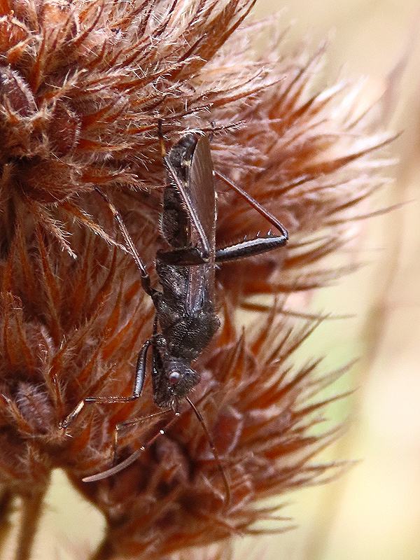 Broad-headed Bug (Alydus eurinus) on seed heads of Round-headed Bush Clover (Lespedeza capitata).