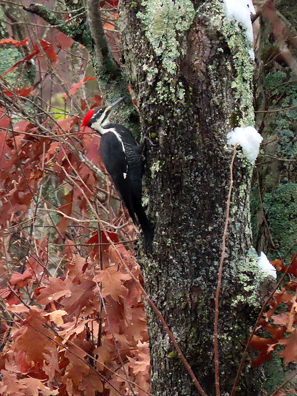 The Pileated Woodpecker flew back to a tree no more than ten feet from me. Because branches were in the way, I only got one unobscured picture as it walked from the base to the top.