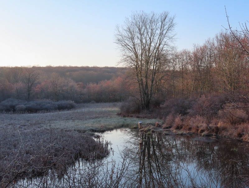 April 21st. On chilly mornings like this, the male Red-winged Blackbirds' (Agelaius phonecius) calls dominate the soundscape.