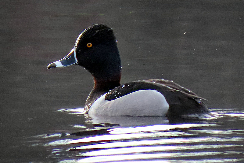 East of Route 207, only Ring-necked Ducks around. This pair motored over to an island...