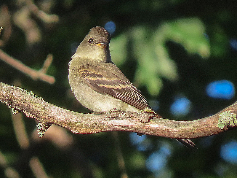 A Flycatcher, maybe Alder Flycatcher (Empidonax alnorum).