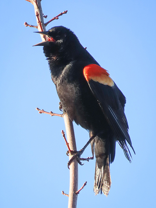 More and closer male Red-winged Blackbirds (Agelaius phoeniceus).
