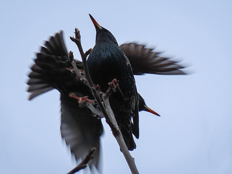 March 7th. Several European Starlings (Sturnus vulgaris) hang out near the Route 85 trail head.