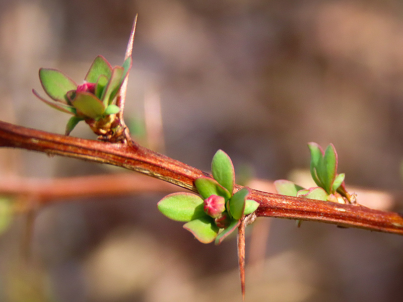 The invasive Common Barberry (Berberis vulgaris) is also budding out.