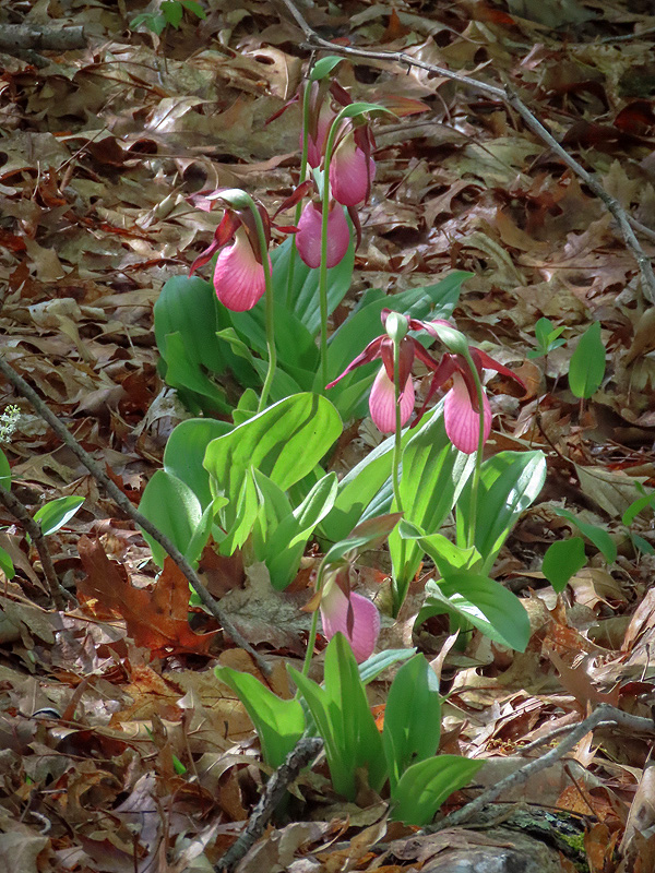 May 17th. The Pink Lady's-slipper Orchids (Cypripedium acaule) are in full bloom now.