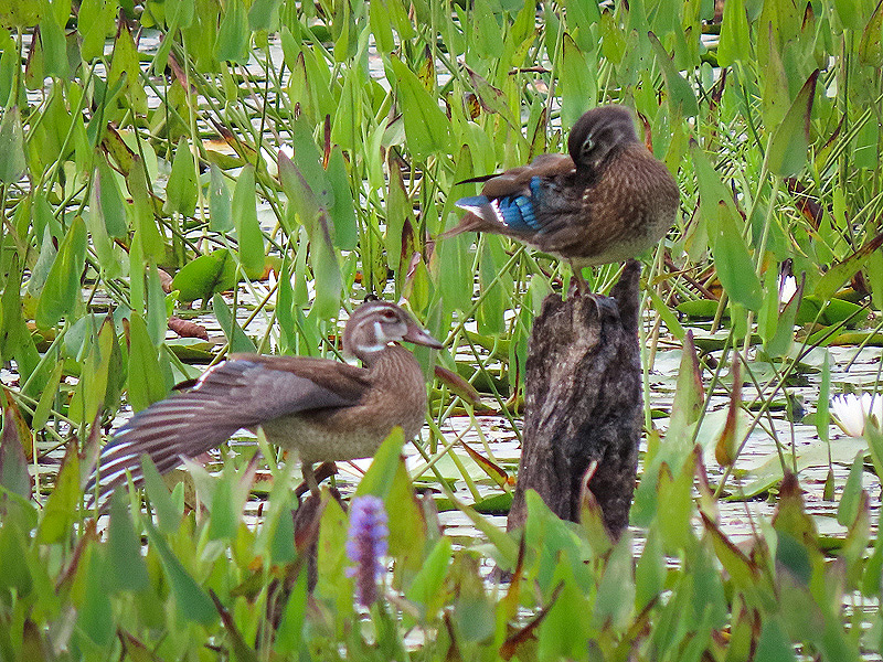 Walking west, I passed two male Wood Ducks (Aix sponsa) on stumps again.