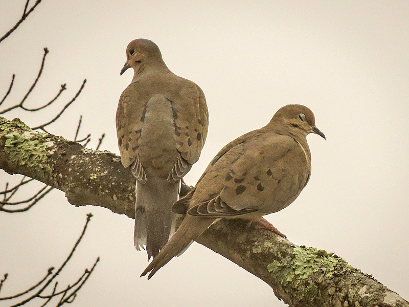 A pair of Mourning Doves (Zenaida macroura) perched near where I've seen them on several mornings lately.