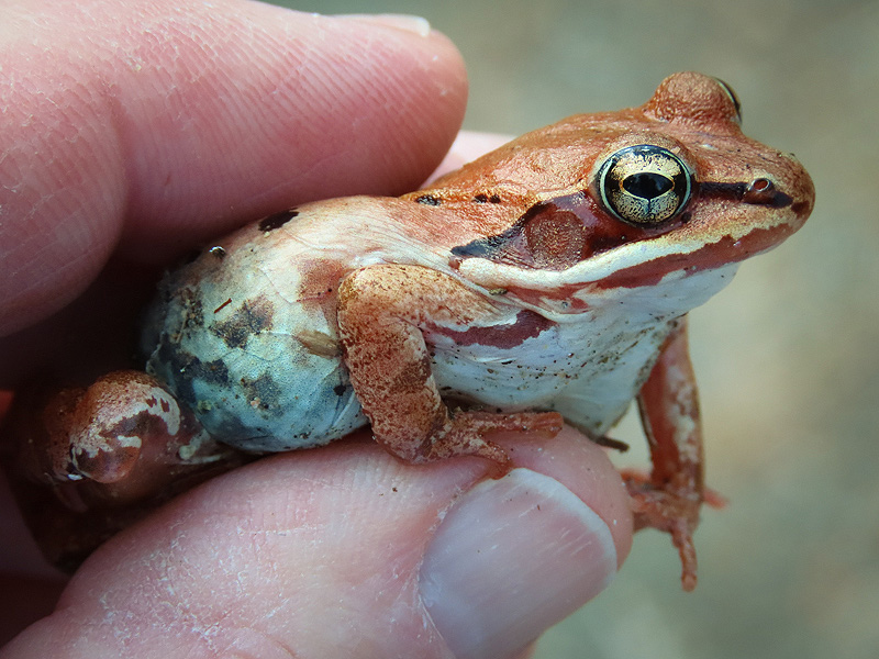 I found several Wood Frogs alone, up on the trail. (Their coloration is highly variable.)