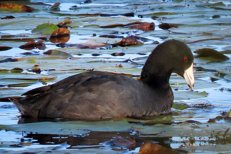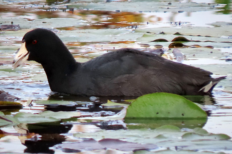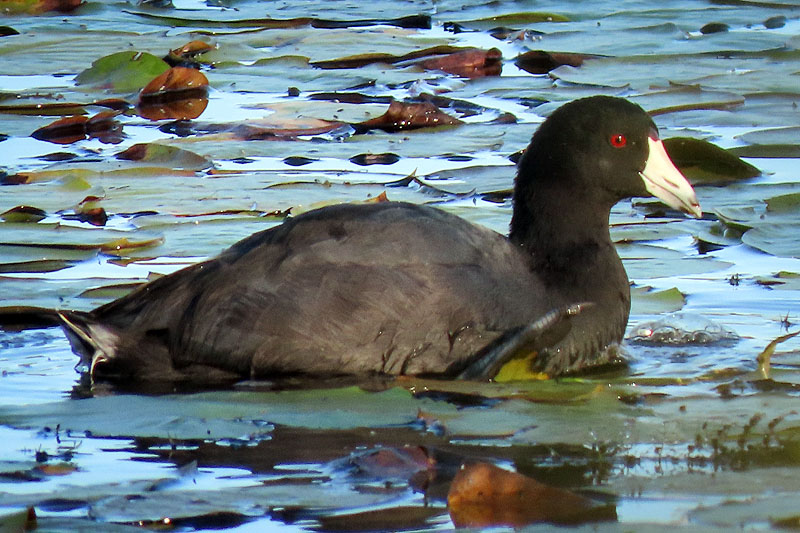 The Coot hanging out with a pair of young Wood Ducks (Aix sponsa).