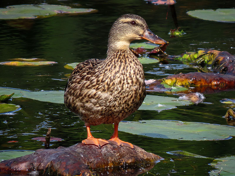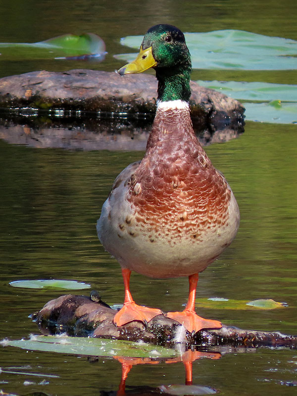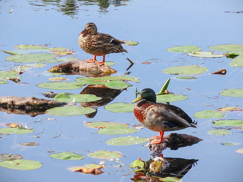 Eight or nine of roughly 15 Mallards (Anas platyrhynchos).