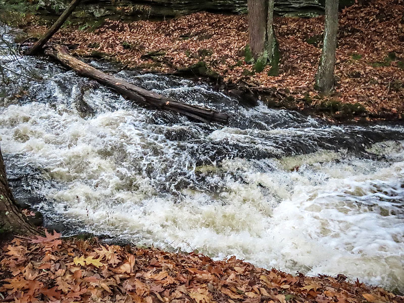 October 31st. Out to Grayville Falls after several inches of heavy rain the day and night before. Watch a short video of the rushing water here: https://youtu.be/5M9qKaLuNpg
