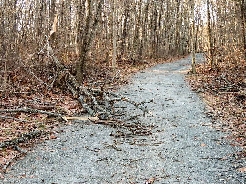 December 20th.The last day of Fall. Heavy rain and wind yesterday made a mess of the trail. This was just west of the train mural.