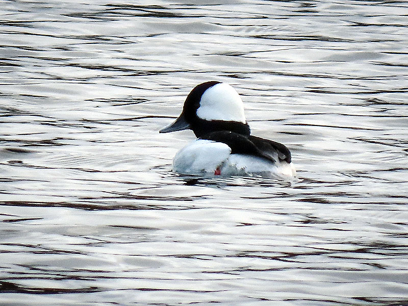The male Bufflehead (Bucephala albeola) was still around. Grooming.
