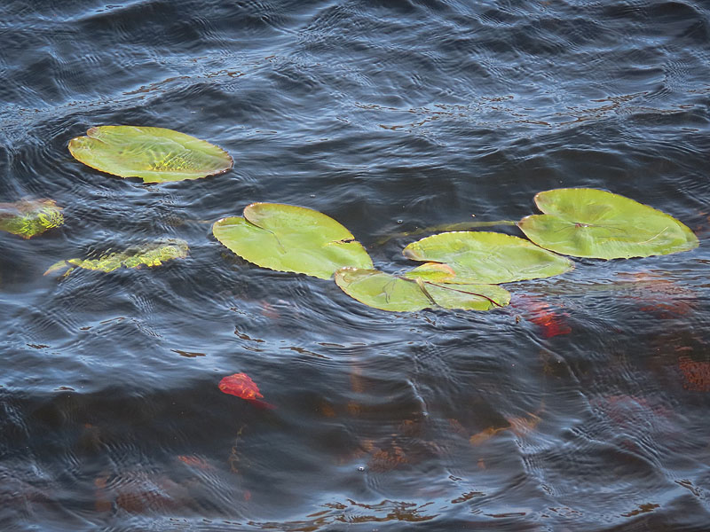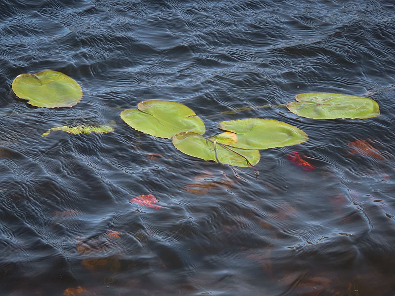 Wind-driven waves and Bullhead-lily (Nuphar variegatum) pads. Elsewhere, I saw a few buds.