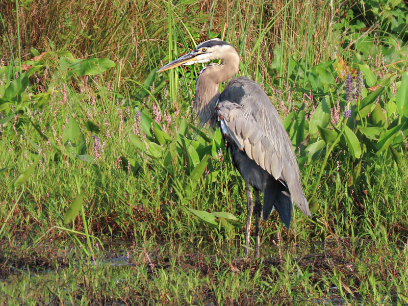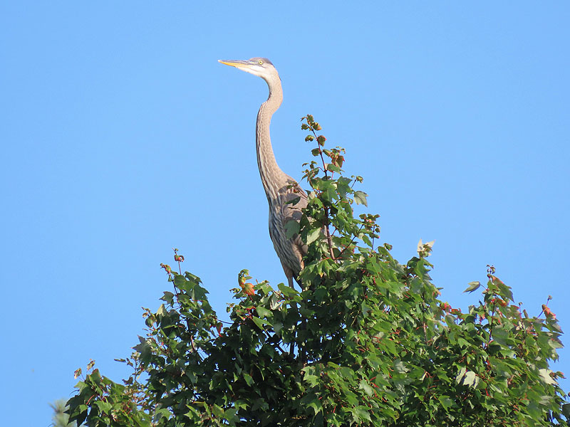 August 9th. The skinny Great Blue Heron at the pond by the Colchester Spur junction.