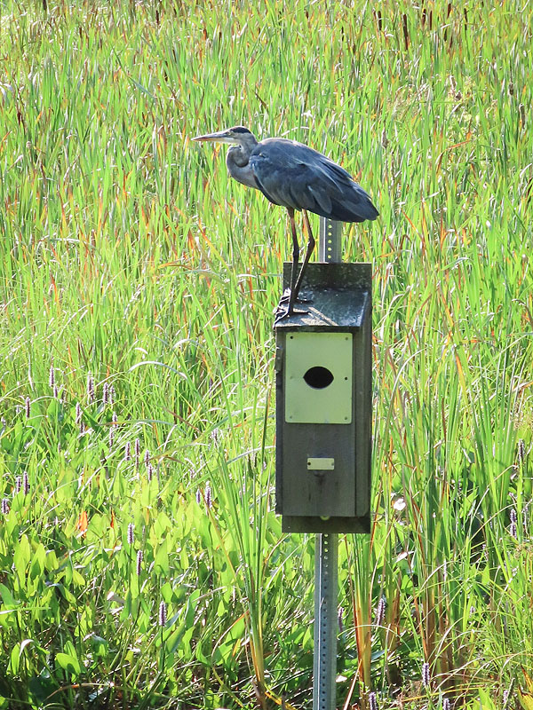Ol' Reliable, the Great Blue Heron (Ardea herodius) that owns the Wood Duck perch.