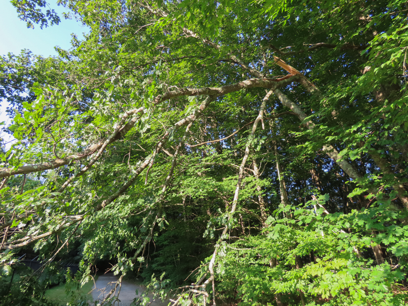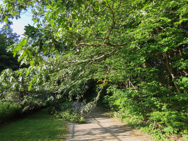 August 12th. Part of a tree split off up high. I think the whole tree should come down. I told the Hebron Park & Rec Director about it.