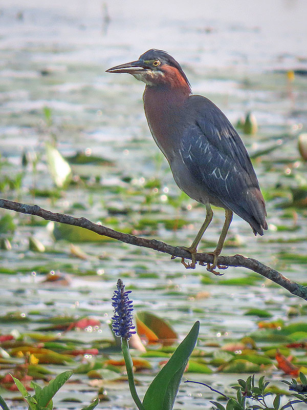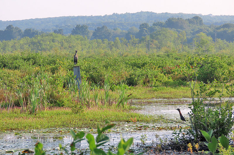 The Great Blue Heron at the left, but a Green Heron (Butorides virescens) at the right.
