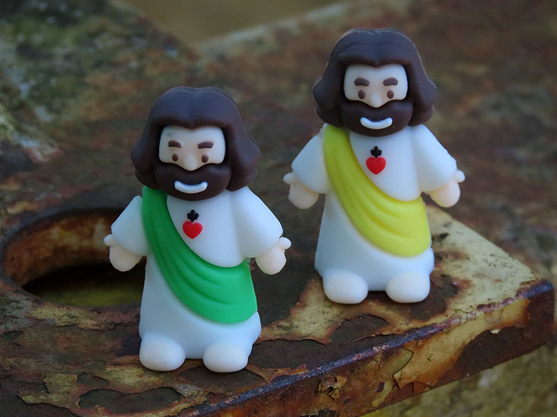 Little plastc Jesus figures still showing up on trail barriers. (I think it was a church youth group project.)