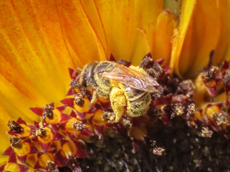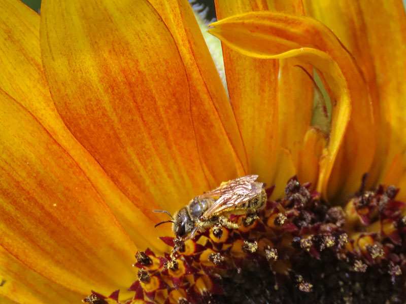 Sunflowers and bees at the public garden plots to the east of Cranberry Bog.
