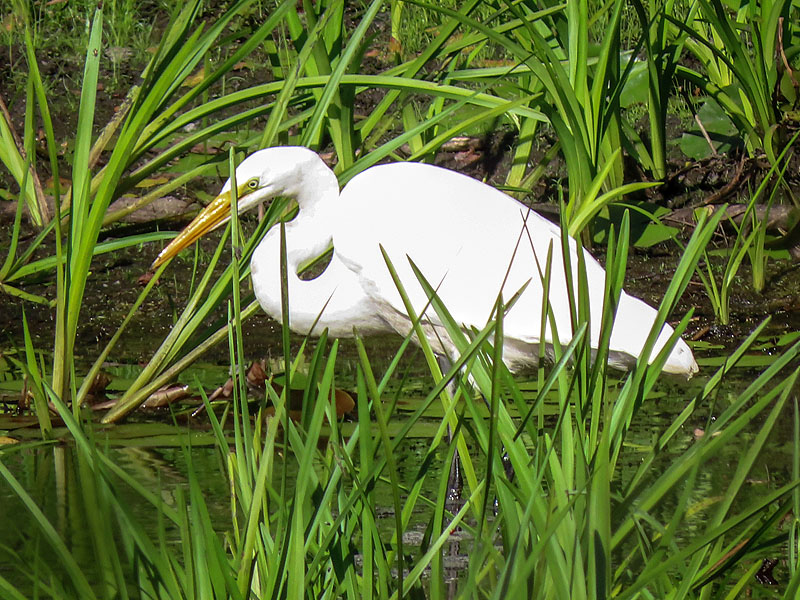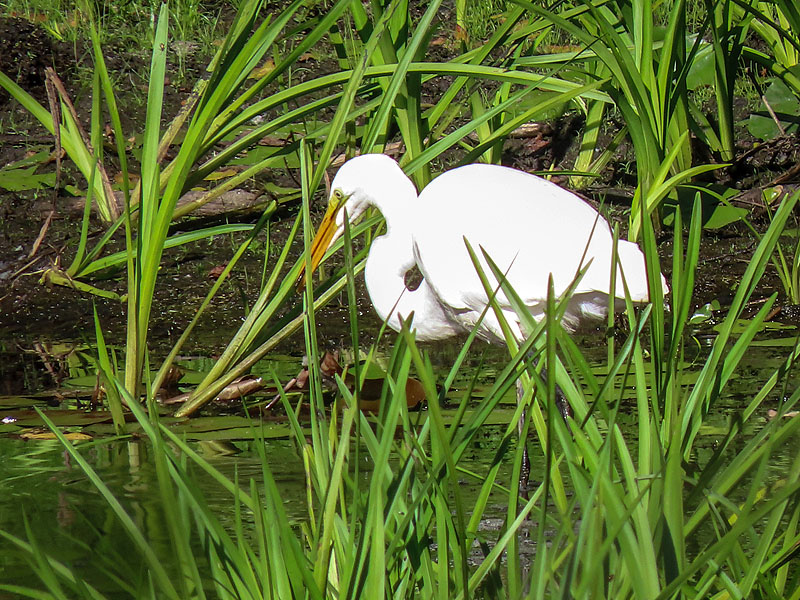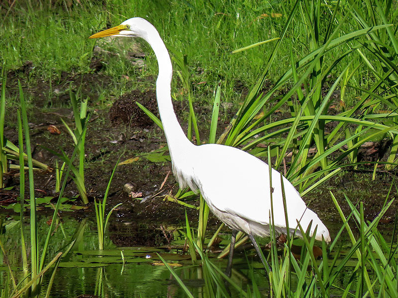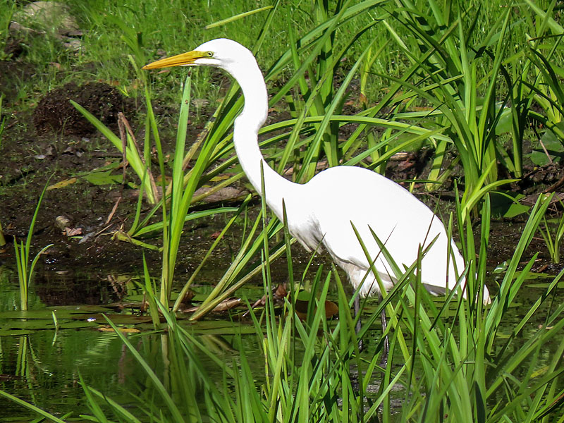 A Great Egret (Ardea alba) at the eastern end of the pond.