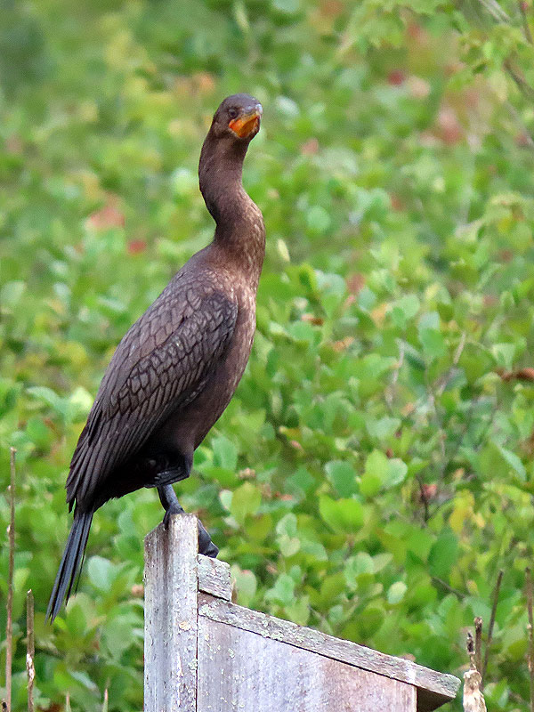 August 20th. (My parents' 87th Anniversary.) The Double-crested Cormorant (Phalacrocorax auritus) has claimed the Wood Duck house.