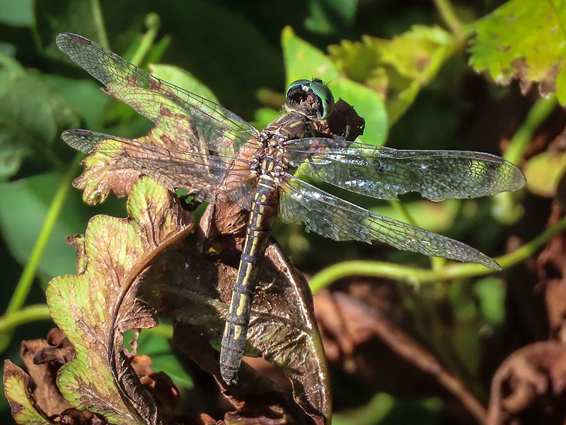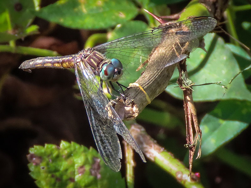 Next stop Cranberry Bog. An ancient Blue Dasher dragonfly (Pachydiplax longipennis). Wings tattered.
