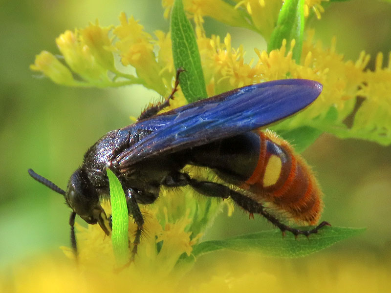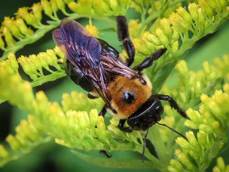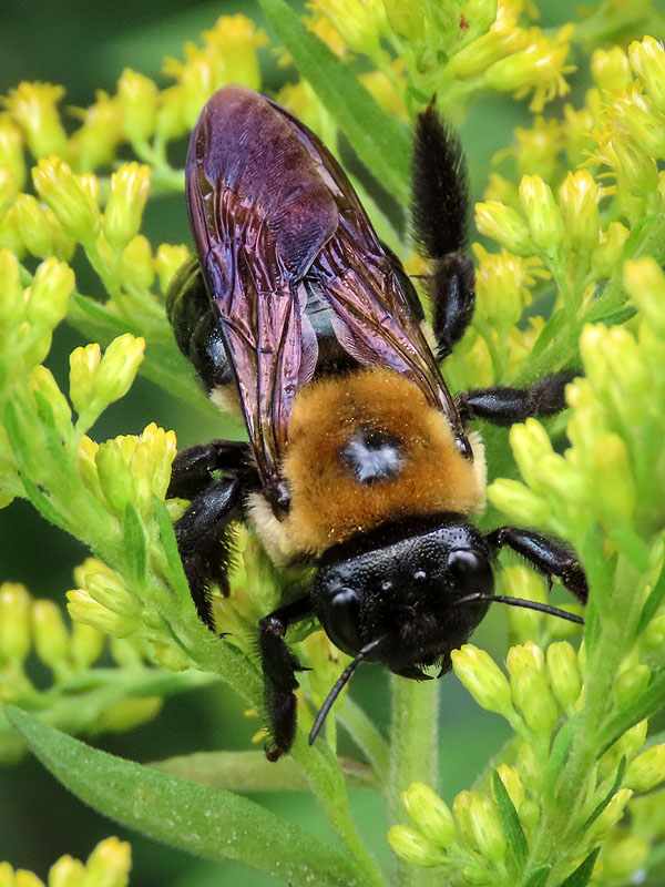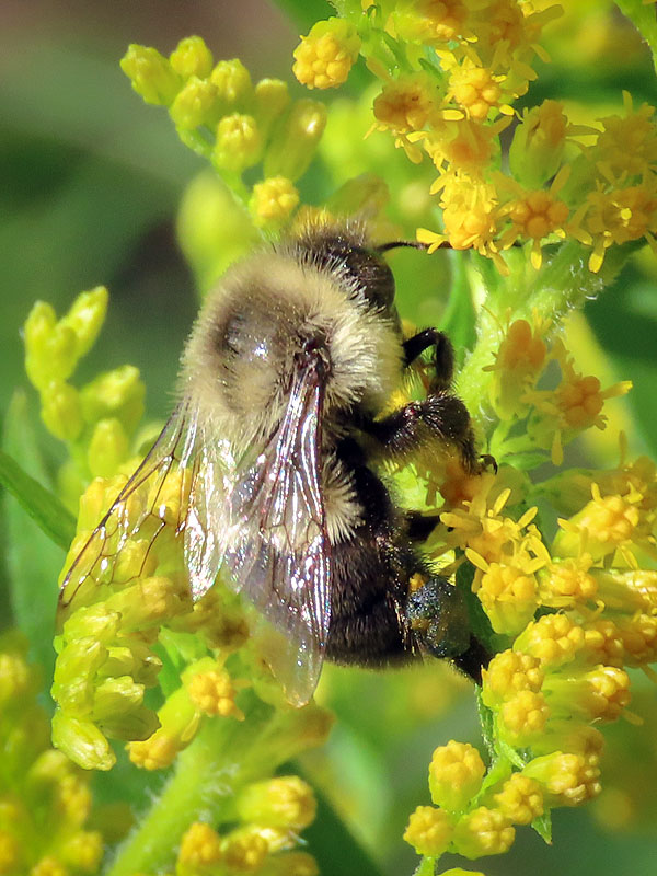 I wonder where this Bumble Bee (Family Bombidae) got the dark colored pollen.