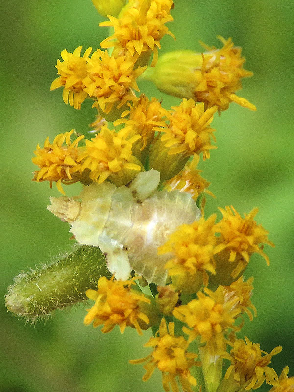 A nymphal Jagged Ambush Bug (Phymata pennsylvanica), pale and with only wing buds.